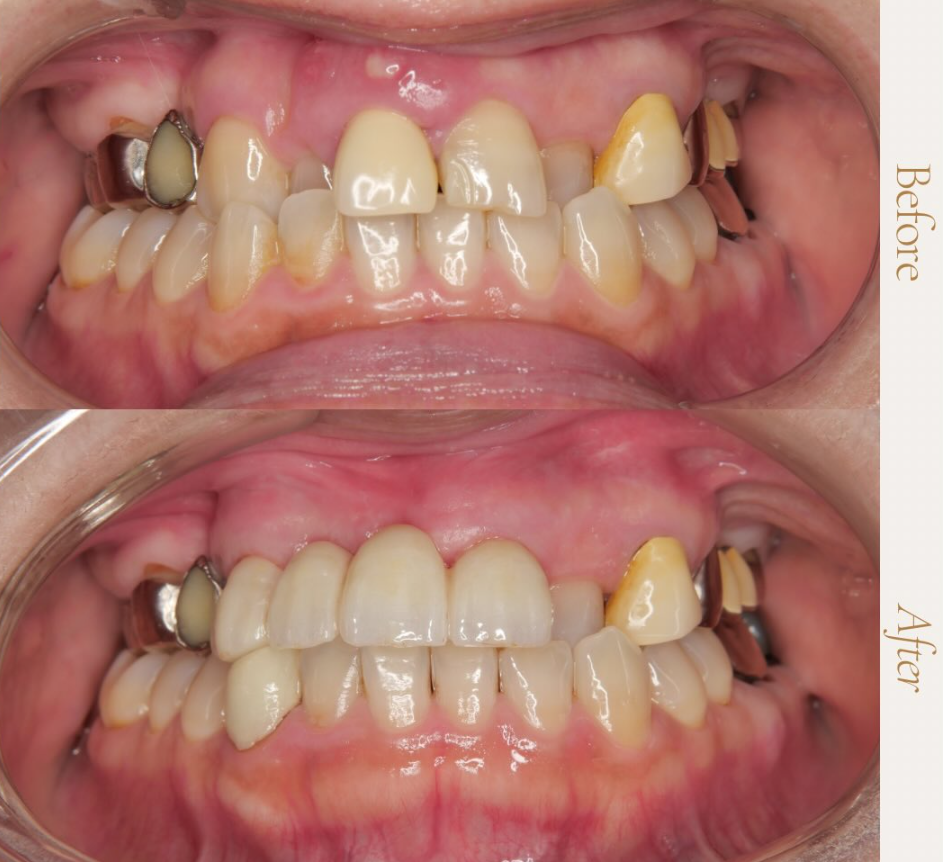 前歯部に、ジルコニアブリッジ を装着したケースです。欠損部を補う方法として、今回はブリッジ治療を選択しました。