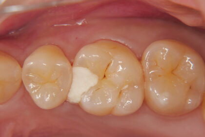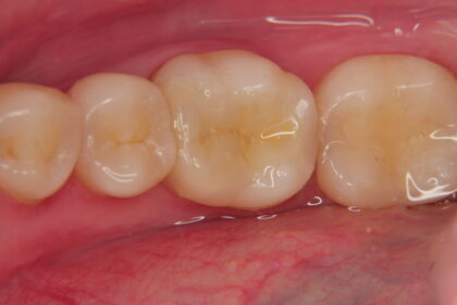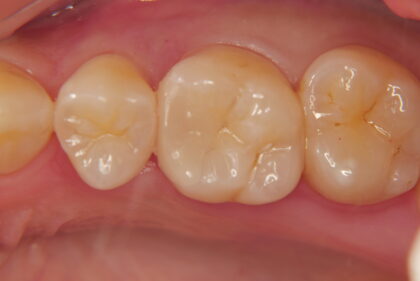 左下6(下顎左側第一大臼歯)の治療で、虫歯の治療後に仮詰めを行い経過観察した後、ENAMICインレーをワンデイトリートメントにてセットしたケースです。